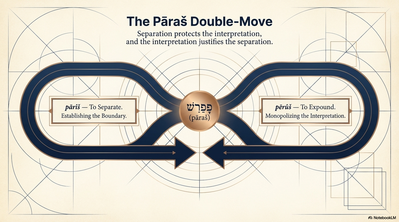 Η αρχιτεκτονική pāraš είναι το θεσμικό υπόστρωμα που κάνει divide et impera ανθεκτικό σε όλες τις γενιές. Οι τακτικές απαιτούν επαναλαμβανόμενη εκτέλεση. Οι ηγέτες πρέπει να συνεχίσουν να εφαρμόζουν διαίρεση και πίεση για να διατηρήσουν τον κατακερματισμό. Οι ηγέτες που εγκαθιστούν την αρχιτεκτονική pāraš κυβερνούν το μέλλον επειδή οι άνθρωποι που δεν μπορούν να διαβάσουν οι ίδιοι το κείμενο επιστρέφουν σε εξουσιοδοτημένους αναγνώστες για ερμηνεία.